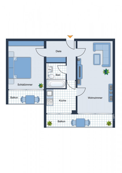 - 2 Zimmer ca. 68 m² Wohnfläche